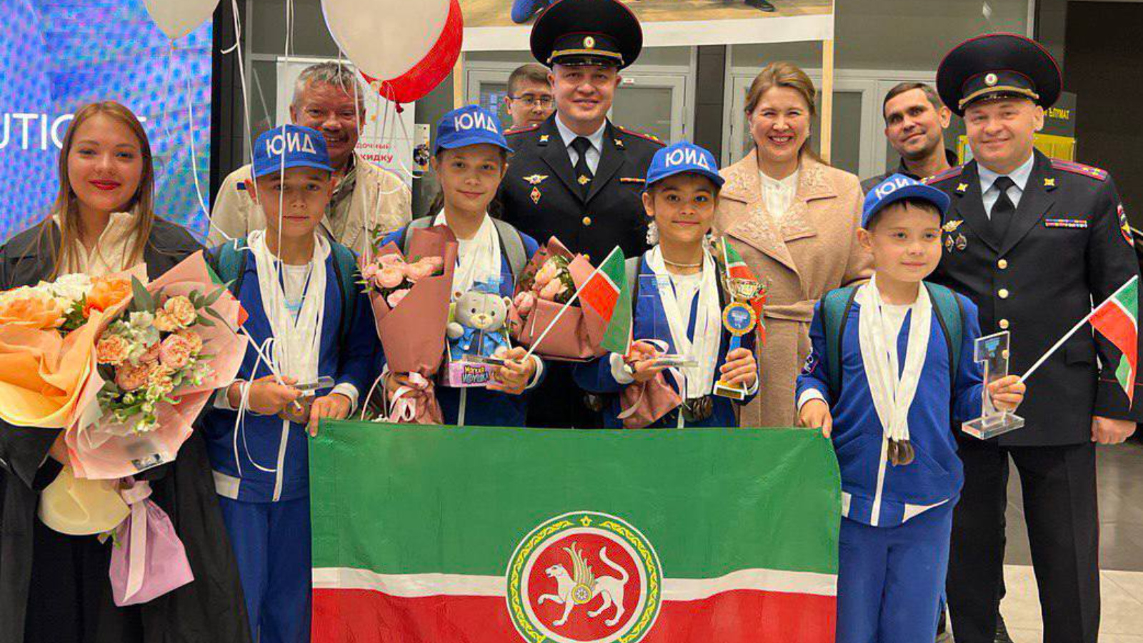 В международном аэропорту «Казань» имени Г. М. Тукая состоялась встреча команды юных инспекторов движения представлявшей Республику Татарстан на Всероссийском конкурсе юных инспекторов движения «Безопасное колесо»